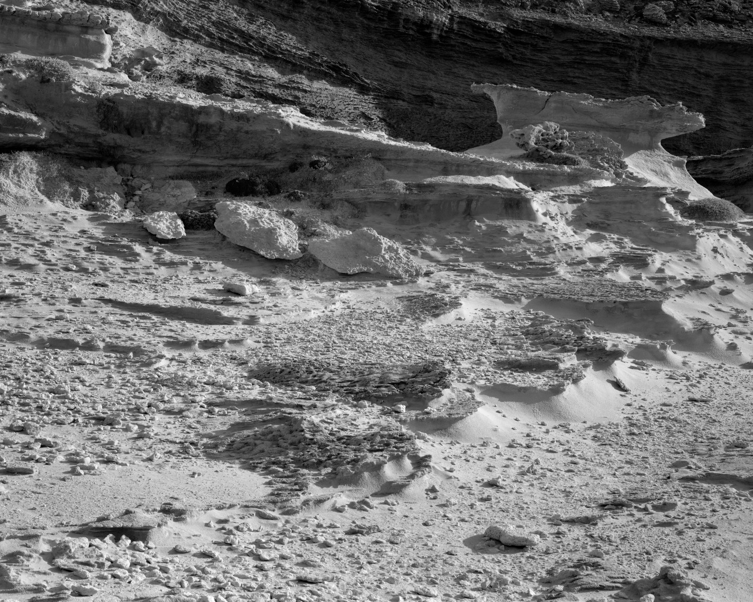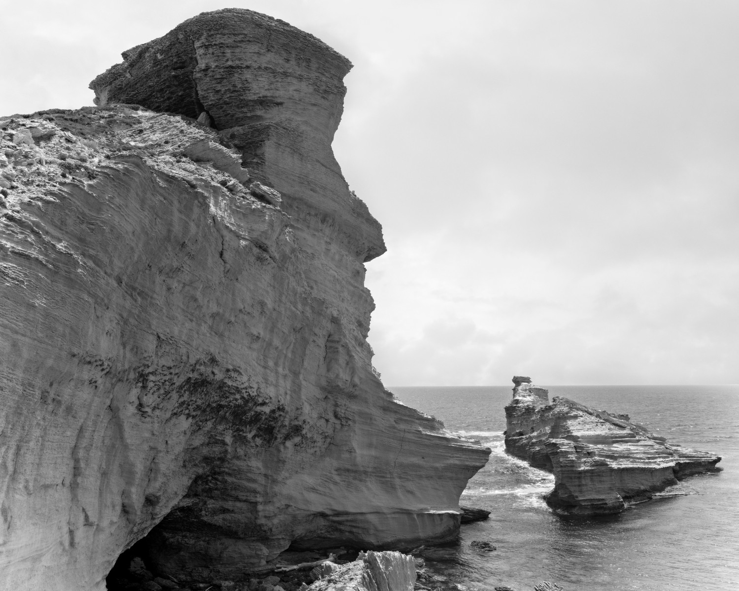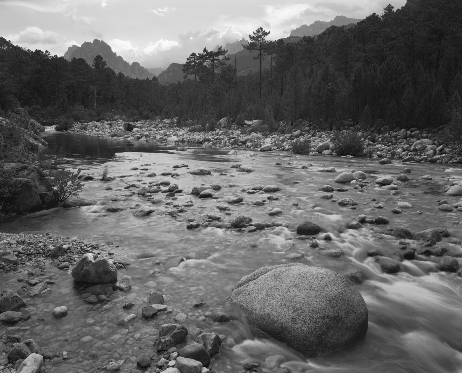 Im hybriden Arbeitsprozess gelingt es, die lebendige Bewegung des Wassers in zart wogende Schleier zu übersetzen, die ihr nuancenreiches Echo im bewölkten Himmel finden. Die belebte Natur tritt auf die Bühne, eine felsige Küstenstruktur geht über in den Rhythmus des Bewuchses, Korkeichen bauen mit kräftigen Aststreben organische Räume, eine korsische Bergkiefer wahrt in herb-schöner Melancholie ihre Mitte in extremem windbedingten Schrägwuchs.